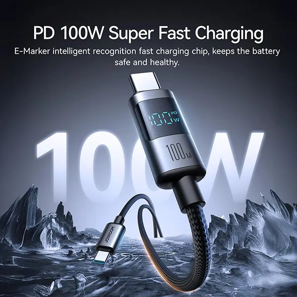 Meet the JOYROOM S-A16 Pro Prism Series USB-C to USB-C Cable — a premium, high-performance cable that combines style, speed, and safety. Featuring a real-time LED digital wattage display, this cable lets you see how much power is being delivered to your device. With support for up to 100 W fast charging, and efficient data transfer, it’s ideal for powering high-demand devices like laptops, tablets, and modern smartphones. Built with durable materials like aluminum alloy connectors and braided nylon jacket, the S-A16 Pro is engineered to withstand daily wear while remaining flexible and tangle-resistant.