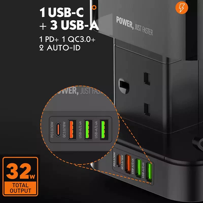 • Rapid & Smart USB Charging: Benefit from 30W PD fast charging, 18W QC3.0, and smart AUTO-ID technology for optimized power delivery to all your devices.