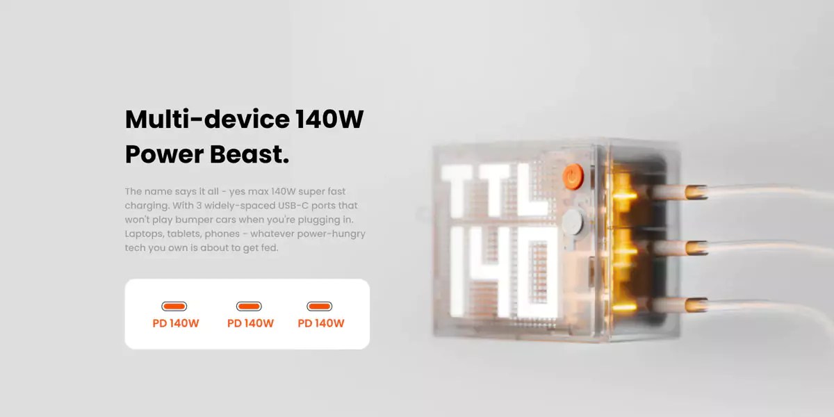 - 3x USB-C Ports for Multi-Device Charging: Features three widely-spaced USB-C ports, each supporting up to 140W PD 3.1 fast charging, enabling you to power up multiple laptops, tablets, and phones without port interference.