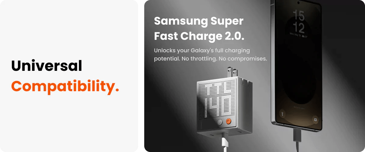 - Intuitive Dot-Matrix Display: A unique pixel display clearly shows real-time power output for individual ports or the total wattage, offering an interactive and practical charging experience.